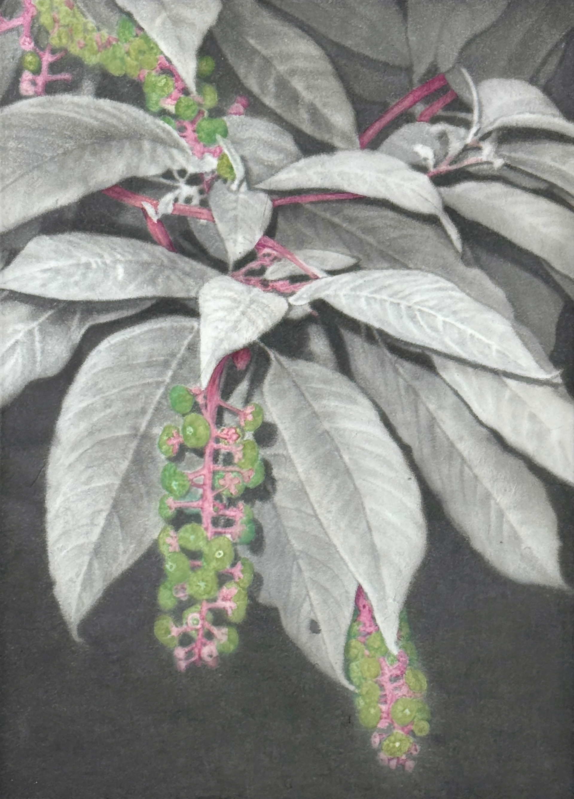 장지에 먹과 석채